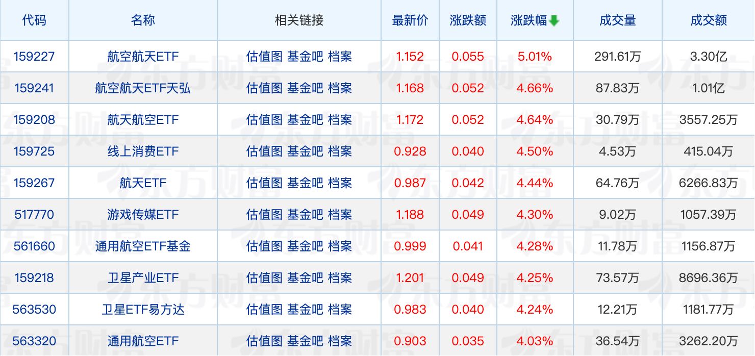 具體來看,商業(yè)航天概念持續(xù)拉升,航天發(fā)展等10股漲停,航空航天相關(guān)ETF集體走強(qiáng),最高漲5.01%。