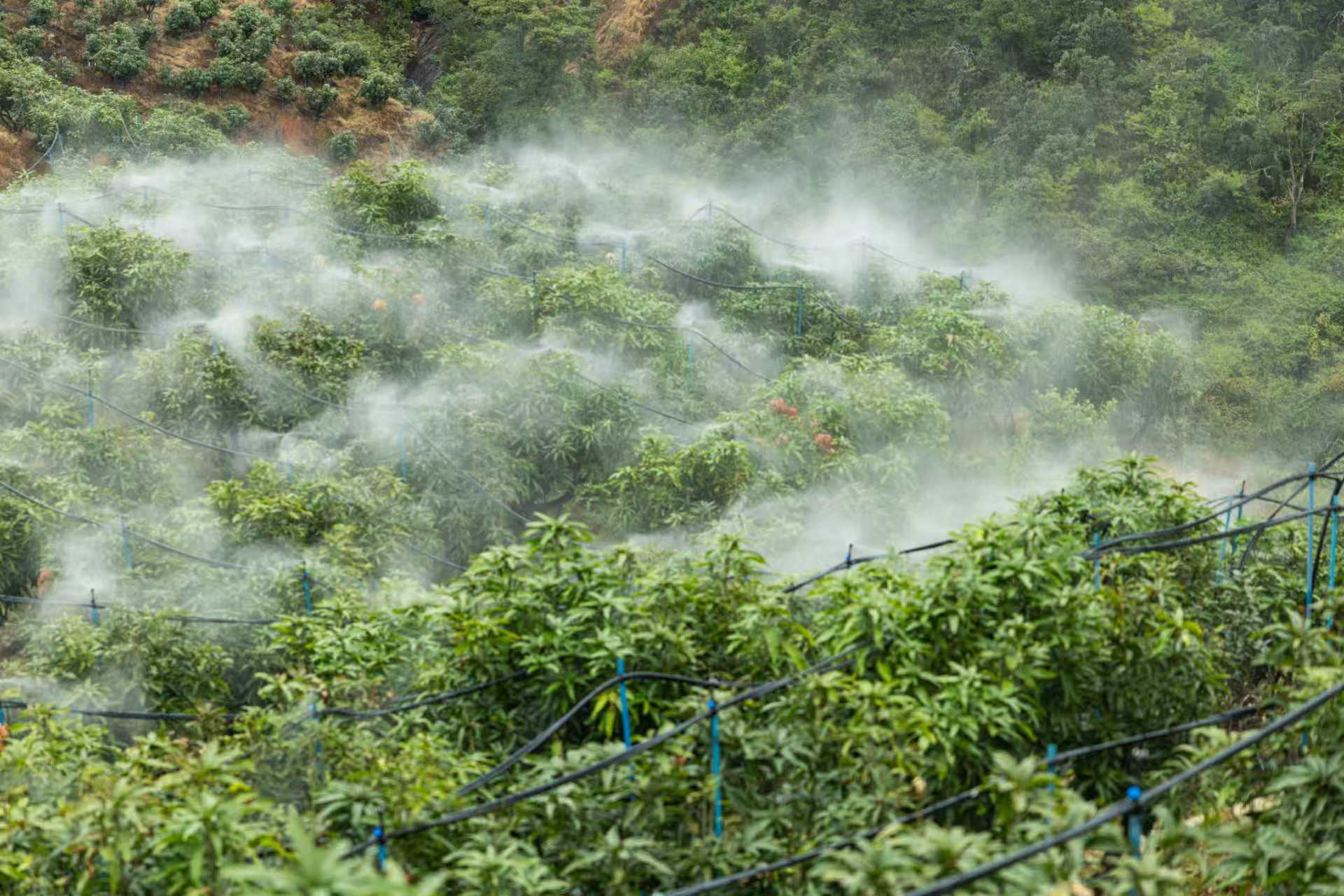 在山巔之上的金河村芒果種植園內(nèi),“智慧云空間彌霧系統(tǒng)”正在指揮田間的彌霧裝置為果園噴灌,所用之水正是來自三灘村污水治理站點的凈化水。彌霧系統(tǒng)通過科學(xué)配比肥料,并以霧化方式進行水肥噴施,使肥料隨水分直接、均勻進入土壤。這不僅顯著提升節(jié)水效果,也有效降低了對流域周邊地下水的環(huán)境影響。