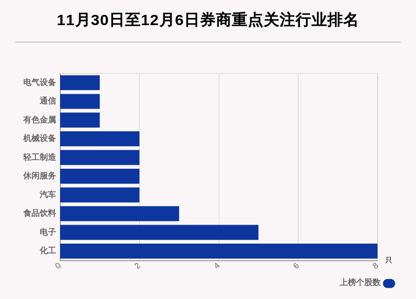 從券商對(duì)行業(yè)的關(guān)注度來(lái)看,券商關(guān)注個(gè)股數(shù)居前的行業(yè)分別是化工、電子、食品飲料。