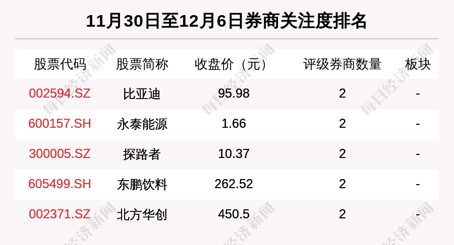 從券商對(duì)個(gè)股的關(guān)注程度來(lái)看,有5只個(gè)股獲得多家券商關(guān)注,券商關(guān)注數(shù)量排名居前的個(gè)股是比亞迪(002594.SZ)、永泰能源(600157.SH)、探路者(300005.SZ)。