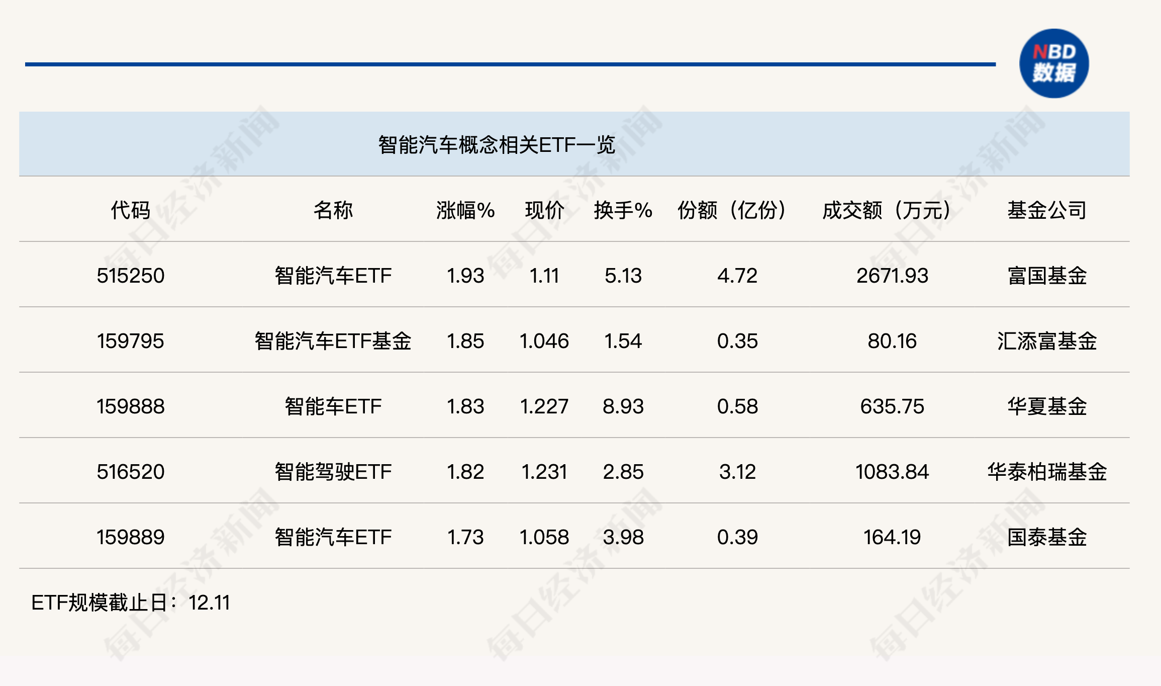 點(diǎn)評:智能汽車ETF(515250)半日漲幅為1.93%,份額為4.72億份,上午成交金額為2672萬元。該ETF追蹤的是中證智能汽車主題指數(shù),追蹤該指數(shù)的ETF還包括智能車ETF(159888)、智能駕駛ETF(516520)等。