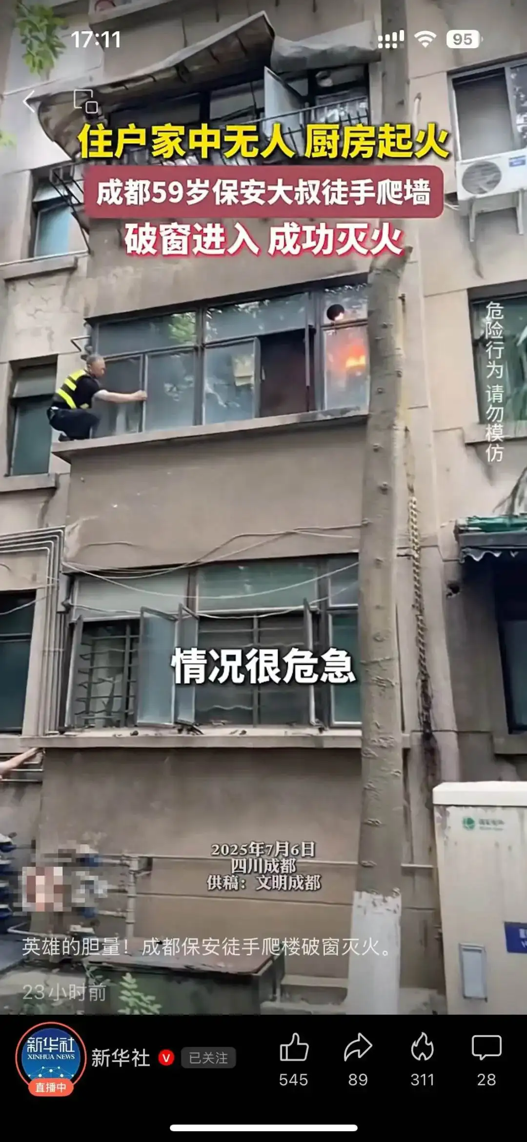【59歲保安化身蜘蛛俠徒手破窗滅火】