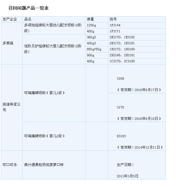 ·召回:國家質(zhì)檢總局要求進(jìn)口商立即召回可能受污染產(chǎn)品